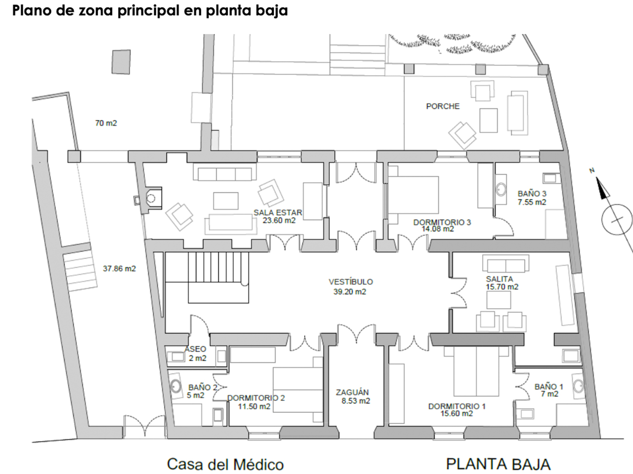 Más de 1.000 m² de zonas exteriores privadas que incluyen jardín, porches y terrazas. Estos