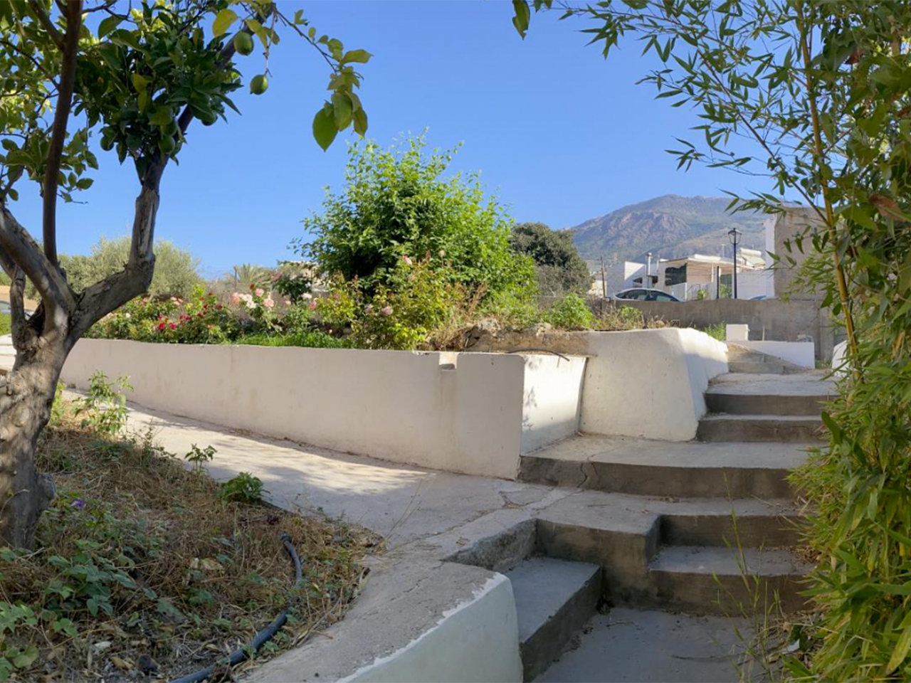 La vegetación y los cerramientos aportan privacidad visual y control del entorno.